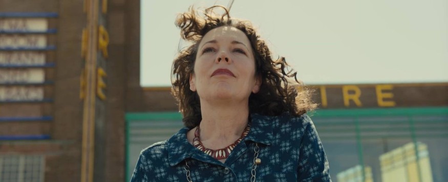 Chez Mendes, l’intrigue se déroule dans l’Angleterre du début de l’ère Thatcher, dans une ville balnéaire où trône un immense bâtiment en partie désaffecté, un cinéma du bord de mer qui affiche certains des titres phares de l’époque (Les Chariots de feu, Raging Bull …). La gérante, Hilary (Olivia Colman) est une femme solitaire, d’une fragilité mentale aisément perceptible (on la qualifie même de « schizophrène ») et qui, selon les dires de Sam Mendes, renvoie à la « maladie mentale » de sa propre mère. Sur ce substrat d’origine autobiographique (le scénario a d’ailleurs été écrit par Mendes seul), va venir se greffer une romance avec un nouvel employé, un jeune homme noir, Stephen (Micheal Ward) en proie au racisme de l'époque et en désir de partance, mais qui n’en va pas moins s’attacher à cette femme amoureuse, au cours de scènes à la belle délicatesse de touche (le pigeon emmaillotté sur le toit du cinéma, les châteaux de sable saccagés …), scènes qui savent prendre leur temps et ancrent ainsi le film à contre-courant d’un certain cinéma actuel. Au plan visuel, le film, certes un peu sage, joue sur l’alternance intérieur/extérieur et ombres/lumières, valorisant les somptueux décors et la photo due au fidèle Roger Deakins (1917, Skyfall, Les noces rebelles, Jarhead - La fin de l'innocence).